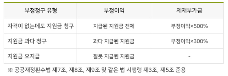 3) 명단공표 : '공공재정환수법' 제16조에 의거, 직전 연도부터 과거 3년간 제재부가금 부과처분을 2회 이상 받고 부정이익 가액이 3천만원 이상이며, 심의를 거쳐 부정 수익자 명단 공표 가능