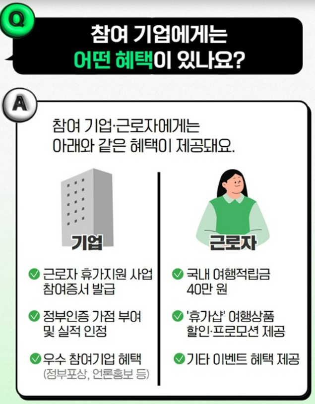 근로자 휴가지원사업에 참여한 기업에게는 다음과 같은 혜택이 주어집니다.