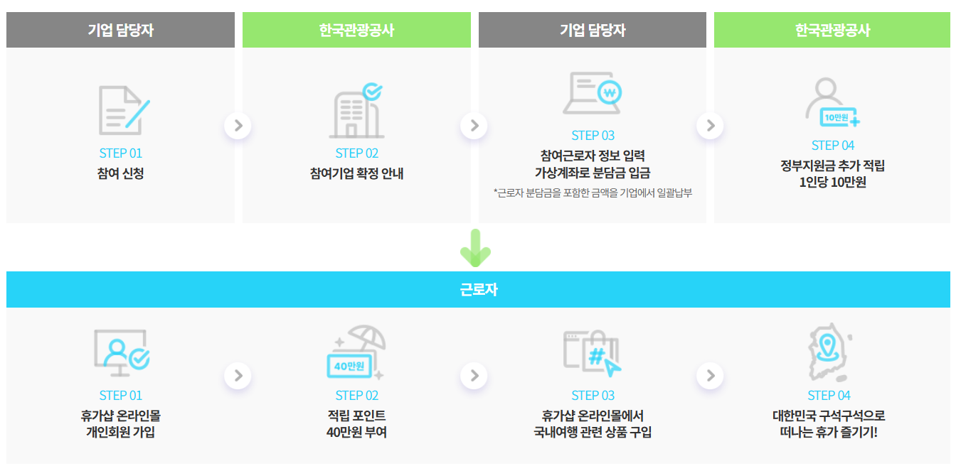 기업은 먼저 근로자휴가지원사업에 참여하기 위해 온라인으로 신청서를 제출해야 합니다. 이후, 정부에서 신청서를 검토하고 승인하면, 근로자들은 여행 적립금을 받을 수 있는 자격을 얻게 됩니다.